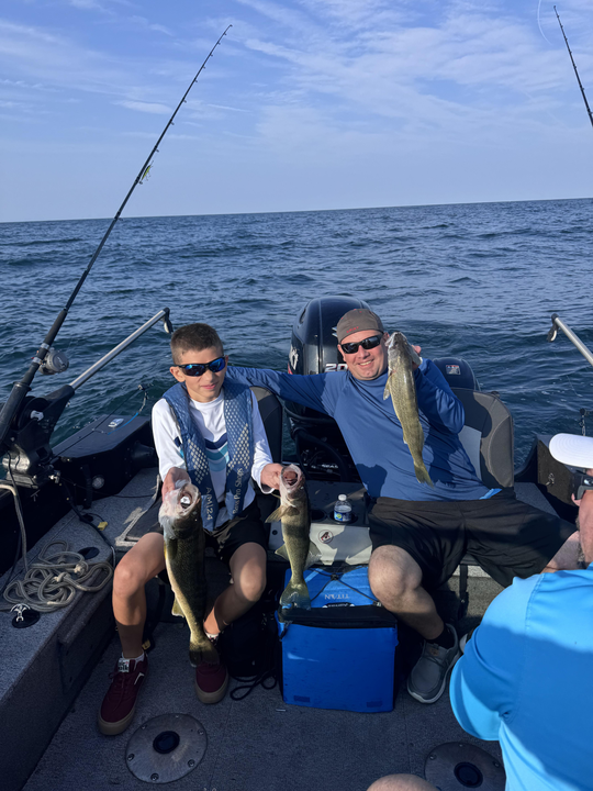 Explore the Angling Edge Charters photo gallery and get a glimpse of unforgettable New York fishing trips from Buffalo, NY. View action shots from Lake Erie fishing charters, Lake Ontario salmon fishing, and ice fishing in New York. From scenic morning trips on NY creeks to exciting night fishing adventures, our photo collection captures the best of freshwater fishing in Upstate New York. See what it's like to reel in trophy Walleye, Lake Trout, Smallmouth Bass, and Salmon with Captain Sean Firkins.